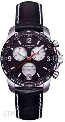 Koperta zegarka : StalKlasa wodoszczelności : 100M+DSSzkło : Szafirowe (nierysujące się)Kolor tarczy : CzarnyTyp tarczy : Indeksy / Cyfry arabskieBransoleta : SkóraKolor bransolety : CzarnyTyp mechanizmu : Kwarcowy (na baterię)Waga zegarka : 75gWymiar koperty w poziomie : 40mmWymiar koperty w pionie : 40mmGrubość zegarka : 10,9mmFunkcje zegarka : Stoper, kalendarzGwarancja : 2 lata (międzynarodowa)Certina to szwajcarski producent czasomierzy będący własnością Swatch Group. Firma założona przez braci Alfreda i Adolfa Kurth w niewielkiej szwajcarskiej miejscowości Grenchen w 1888 roku. Nazwa Certina została nadana na 50-lecie istnienia przedsiębiorstwa.Pierwszy zegarek całkowicie wykonany przez braci Kutrh został skonstruowany w 1906 roku – damski zegarek nazywający się Granna. Model uzyskał międzynarodowe uznanie otrzymując w 1910 roku złoty medal na targach w Mediolanie oraz uhonorowany wyróżnieniami na targach w Brukseli i Bernie. Bracia Kurth byli pierwszymi, którzy wyprodukowali pierwszy zegarek mechaniczny z cyfrowym odczytem.Brand certina jest również partnerem teamu F1 BMW Sauber. Oficjalną twarzą reklamową producenta jest kierowca wyścigowy Robert Kubica.Niezawodność, precyzja i innowacyjność charakteryzują filozofię Certiny od 1888 roku, od powstania firmy przez braci Kurth. W 1959 roku Certina opracowała swój słynny system zabezpieczeń Double Security, DS Concept, nadając swoim zegarkom ponadprzeciętną wytrzymałość i nadzwyczajną wodoszczelność. Certina może poszczycić się wieloletnim zaangażowaniem w świat sportu, szczególnie sportu motorowego. Certina towarzyszyła w tryumfach takim wielkim gwiazdom jak Mike Doohan, Alex Crivillé, Petter Solberg, Sete Gibernau, Thomas Lüthi czy Robert Kubica, a także legendzie boksu Muhammadowi Ali. W 2005 roku Certina staje się Oficjalnym Partnerem zespołu BMW Sauber F1 Team.Certina jest marką Swatch Group, najpotężniejszej firmy zegarmistrzowskiej na świecie. Certina to przywódca na międzynarodowym rynku zegarków sportowych w przedziale cenowym od 700 do 4 600 zł. Firma ma swoje przedstawicielstwa w ponad 60 krajach.