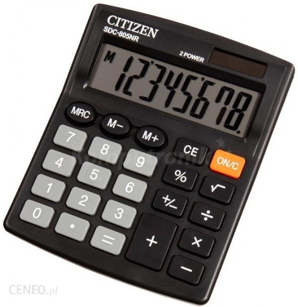Kalkulator Citizen SDC-805 z wyświetlaczem o stałym kącie nachylenia. Kalkulator zasilany baterią oraz baterią słoneczną. Dodatkowo posiada funkcję automatycznego wyłączania, funkcję pierwiastka kwadratowego, przycisk procenty oraz trzy przyciski pamięci. Kolor czarny.8 pozycyjny wyświetlacz;podwójne zasilanie;plastikowe klawisze;wymiary: 131,0×102,0x18,5 mm