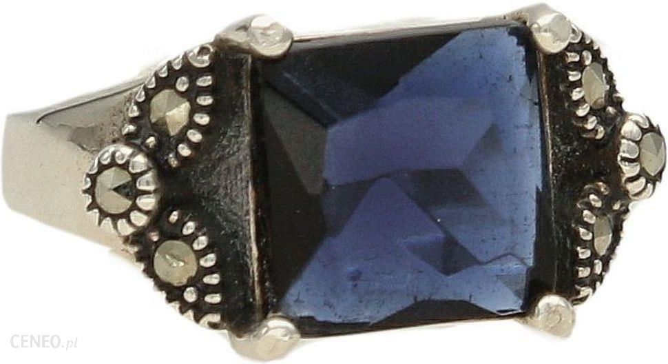 DIAMENT SREBRNY PIERŚCIONEK Z GRANATOWYM OCZKIEM I MARKAZYTAMI