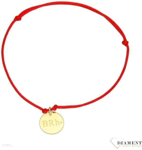 Złota bransoletka na sznureczku z grupą krwi BRh+, wykonana z czerwonego sznurka oraz złota próby 585, waga około 0,44 gram. Ten typ biżuterii pojawia się szczególnie często w wyrobach stworzonych z myślą o nastolatkach i młodych kobietach. Bransoletka posiada wygodną regulację. Złoty element który został zastosowany w bransoletce to kółeczko z grupą krwi BRh+ o średnicy 10mm.Złota biżuteria dostępna w naszym sklepie to połączenie klasy, stylu oraz elegancji. Starannie wyselekcjonowane dodatki zachwycają wysoką jakością użytych materiałów, dbałością o każdy, nawet najmniejszy szczegół oraz niebywałą precyzją wykonania. Stworzone z myślą o każdej kobiecie, doskonale prezentują się w każdych warunkach. Zapraszamy do zapoznania się z pozostałą częścią naszej wyjątkowej kolekcji.Nasz sklep internetowy z biżuterią dla kobiet jest autoryzowanym sprzedawcą najwyższej jakości złota w Polsce. Cała kolekcja biżuterii Diament zakupiona w naszym sklepie posiada 2 letnią gwarancję i zapakowane są w oryginalne opakowanie.