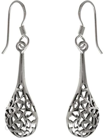 Kolczyki ze srebra próby 925 Wiszące krople o ażurowym wzorze. Biżuteria wykonana jest ze srebra specjalnie ciemnionego (oksydowanego) stylizowanego na staroć.