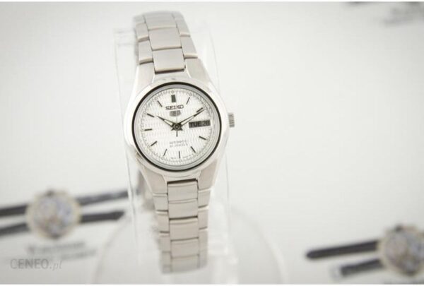 Materiały i dane techniczne Model:SYMC07K1 Seria:5 Typ:Zegarek damski / Elegancki średnica:Ø 24.00 mm Grubość:10.00 mm Koperta:Szczotkowana/polerowana Stal Dekiel:Lity Bransoleta:Szczotkowana i polerowana Stal Tarcza:Srebrna / świecące Markery / świecące wskazówki Sprzączka:Zatrzaskowe zapięcie / Stal Bezel:Stal / Szczotkowana/polerowana Napęd i funkcje Typ napędu:Nakręcany automatycznie Ruch sekundnika:Płynny Napęd:/ 21 klejnoty Data:Dzień i rok Wodoszczelność:3 ATM Inne informacje:Zakręcana korona