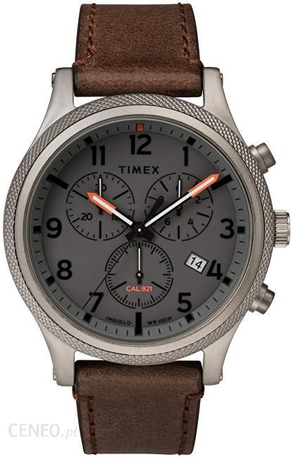 Zegarek męski TIMEX Allied TW2T32800 – to sportowy zegarek męski na skórzanym pasku. Koperta modelu wykonana została z mosiądzu. Na szarej tarczy umieszczono oznaczenia godzin w postaci cyfr arabskich, podziałkę sekundową, datownik oraz subtarcze chronografu. Pomarańczowe zakończenia wskazówek nadają zegarkowi wyjątkowego charakteru. Ciemno-brązowy pasek wykonany z wysokogatunkowej skóry stanowi gwarancję trwałości i wygody noszenia. Wodoszczelność TIMEX Allied TW2T32800 to aż 10 ATM ,dzięki czemu w modelu tym możemy nawet pływać. Nad dokładnością wskazań czuwa precyzyjny kwarcowy mechanizm, To nietuzinkowy męski czasomierz świetnie sprawdzający się zarówno jako zegarek codzienny jak i zwieńczenie casualowej stylizacji. Allied to kolekcja zegarków kierowana do aktywnych mężczyzn. Połączenie sportowego designu i funkcjonalności. Wytrzymałość i wodoszczelność na poziomie 10 barów to cecha wspólna wszystkich modeli z tej kolekcji. Timex – firma założona w 1854 roku jako Waterbury Colock w Naugatuck Valley w Connecticut. Jedną z ważniejszych dat dla marki Timex jest rok 1933 w którym na licencję Walta Disneya stworzyli pierwszy zegarek z Myszką Miki. W latach 50 marka Timex była reklamowana serią spotów telewizyjnych w których zegarki były poddawane różnym testom pokazującym jakość i niezawodność czasomierzy. Od tak wielu lat marka Timex pozostaje przy swojej pierwotnej polityce by tworzyć zegarki dla każdego dzięki czemu przetrwali juz 160 lat. Spektakularnym momentem w ich długoletniej historii było stworzenie zegarka z podświetleniem tarczy Indiglo co spowodowało dwukrotny wzrost sprzedaży zegarków tej marki w USA.