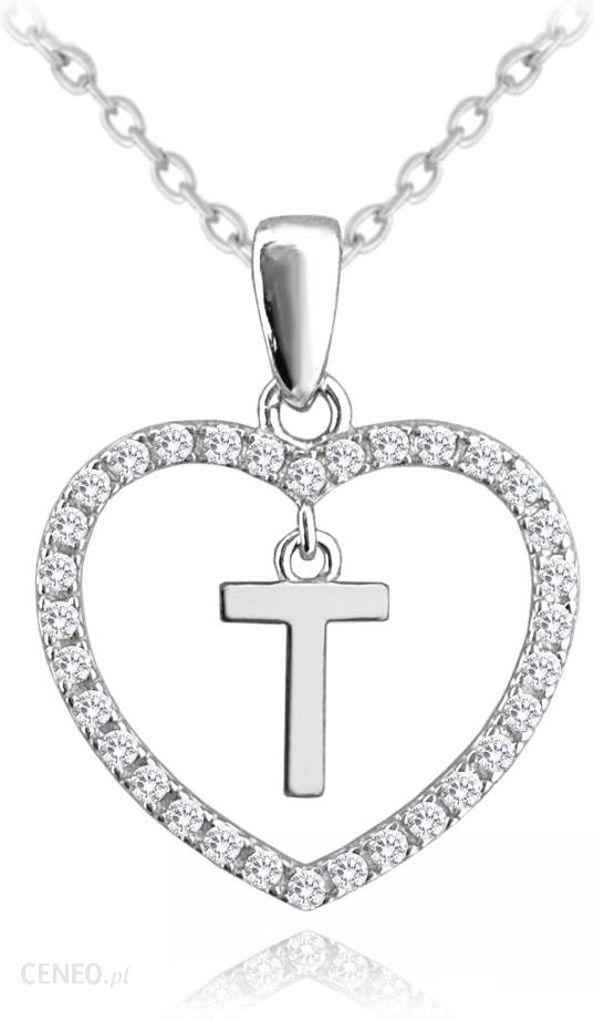 UPOMINKARNIA SREBRNY NASZYJNIK LITERA W SERCU „T” Z CYRKONIAMI